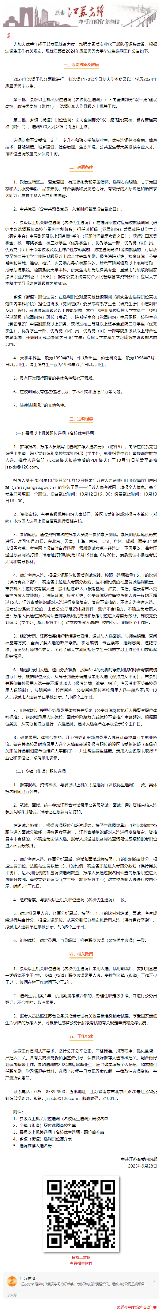 招聘[2024025]江苏省2024年应届优秀大学毕业生选调工作公告