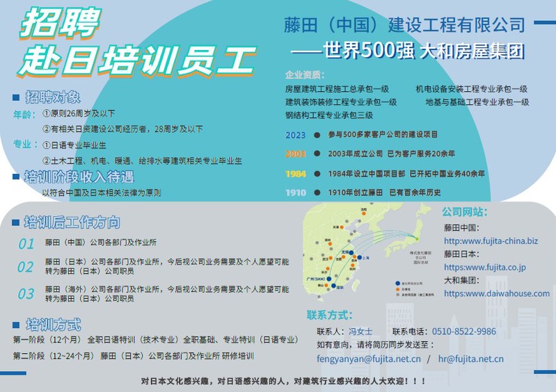 招聘[2024085]藤田(中国)建设工程有限公司2024校园招聘