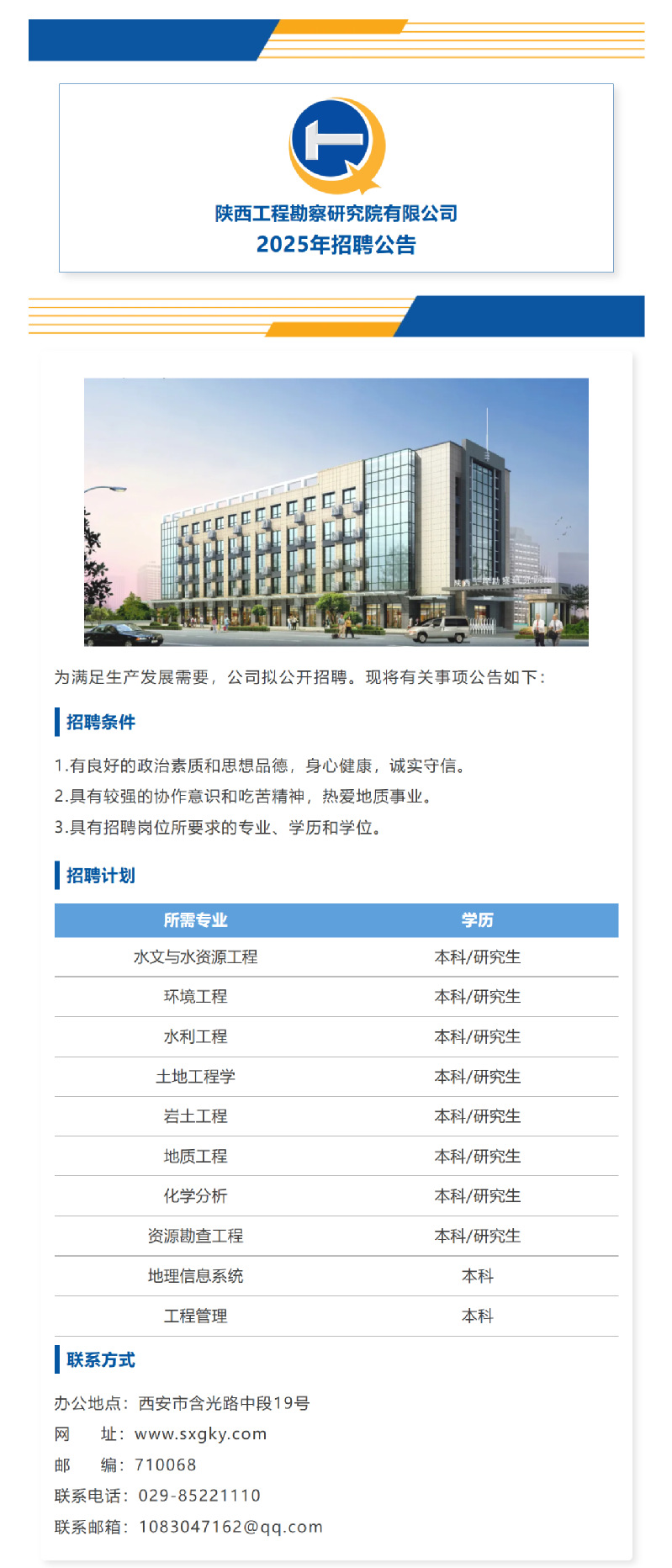 招聘[2024138]陕西工程勘察研究院有限公司2025年招聘公告