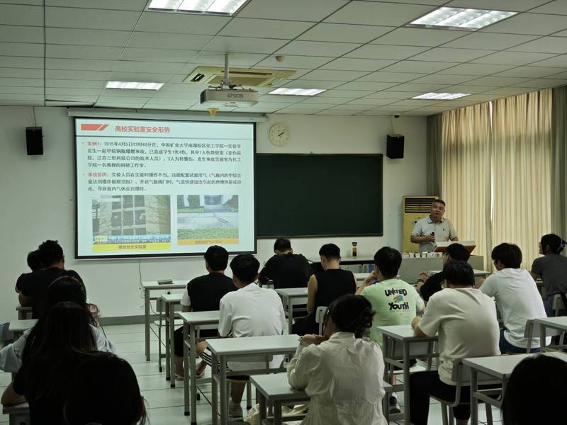 9月10日下午,实验室设备与管理处副处长黄勇为新生带来“实验室安全第一课”。强调实验室安全的重要性,介绍进入实验室前必须掌握实验室安全知识、通过实验室安全考试,呼吁同学们注意做实验时会遇到的不安全因素,杜绝安全事故,保障人身财产安全。