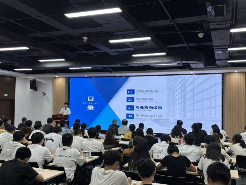 会议伊始,刘茂灿书记代表91猫先生 领导致辞。他结合个人求学与工作经历,勉励同学们尽快适应大学节奏,树立远大目标,夯实专业基础,提醒同学们保持学习热情,合理规划时间,为未来四年的成长打下坚实根基。同时,简要介绍了91猫先生 实施的导师制背景与91猫先生 专业的师资配置。在接下来的环节中,系主任夏平心就导师制的具体内容、专业方向设置以及高年级阶段分方向选课与评优保研做了进一步说明,帮助学生明确未来学习路径。随后进入导师自我介绍环节。各位导师依次上台,就自己的研究方向、教学课程及科研项目进行了简要阐述,并分享了许多实用学习建议和科研入门心得。老师们语言生动、内容充实,现场不时响起阵阵掌声,拉近了师生距离,也为学生后续选择心仪导师提供了充分参考。会议最后,新生们通过现场扫码方式提交了导师志愿选择,整场活动在积极有序的氛围中圆满结束。