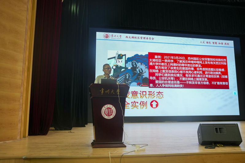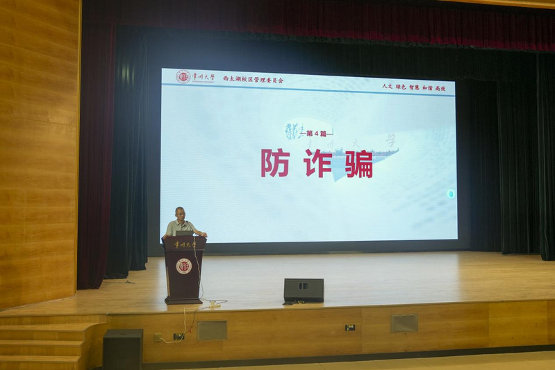 为落实新生入学安全教育要求,提升新生防范电信网络诈骗的能力,10月13日晚,91猫先生 于西太湖校区立艺楼大礼堂举办2025级新生反诈宣传讲座。西太湖校区管委会邹峰老师主讲,全体新生参与。