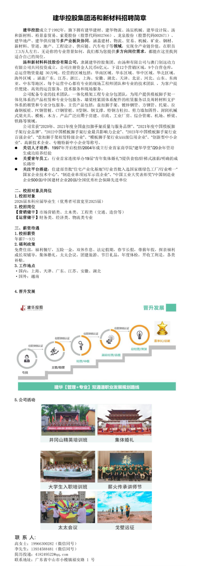 招聘速递[2026003]建华控股集团汤和新材料招聘
