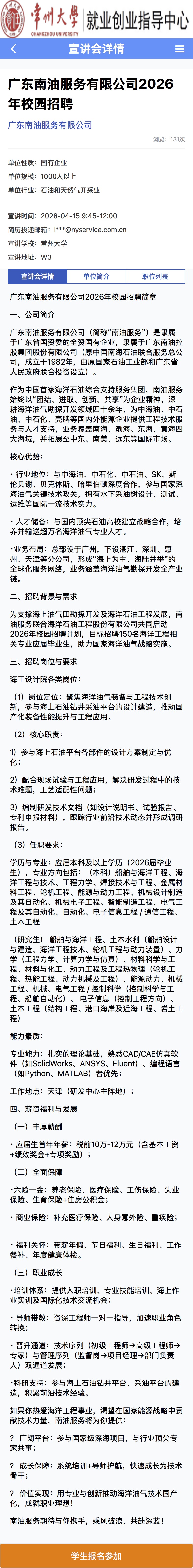 招聘宣讲会[2026030]广东南油服务有限公司2026年校园招聘