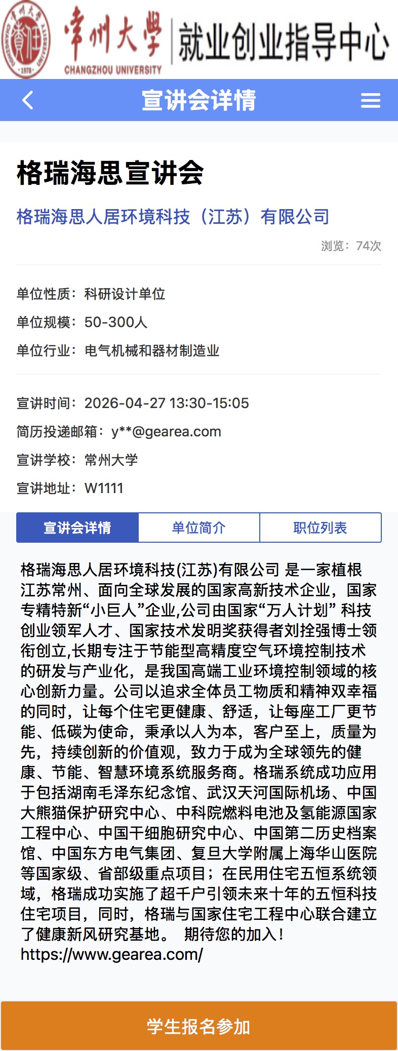 招聘宣讲会[2026038]格瑞海思校园招聘